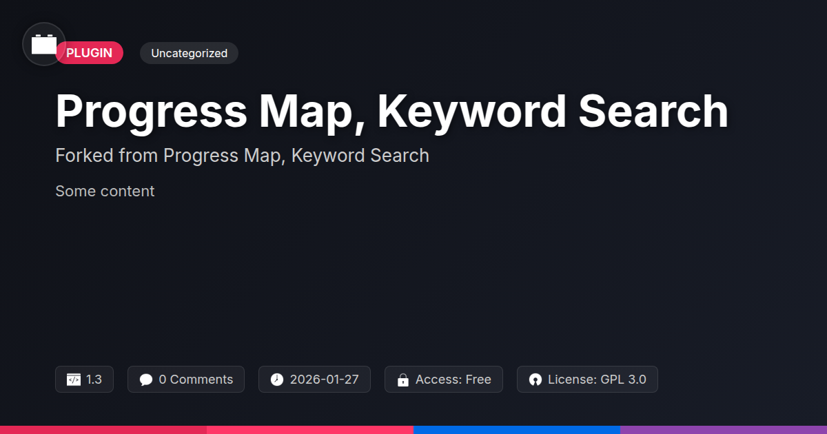 GrootMade is NOT affiliated with Progress Map, Keyword Search or its original author. Progress Map, Keyword Search™ is a trademark of its respective owner and use of it does not imply any endorsement or affiliation. This product has been forked under the GNU General Public License (GPL) and all non-GPL assets (such as proprietary images, fonts, and branding) have been removed. Distributing GPL-licensed code is 100% legal.