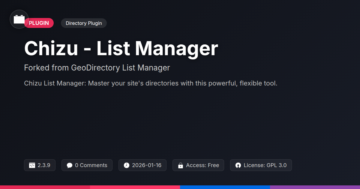 Chizu - List Manager isn't just another plugin; it's a statement. It’s a testament to the power of building upon excellent foundations while injecting fresh innovation and user-centric improvements. It understands the developer's plight, the agency's hustle, and the open-source ethos. It offers the robust functionality you need to create virtually any type of directory imaginable, from niche local guides to sprawling resource hubs, all without the infamous vendor lock-in or the frustrating limitations that plague lesser tools. It’s about empowerment, efficiency, and frankly, making your life as a builder of awesome websites a whole lot easier – and dare we say, more enjoyable.