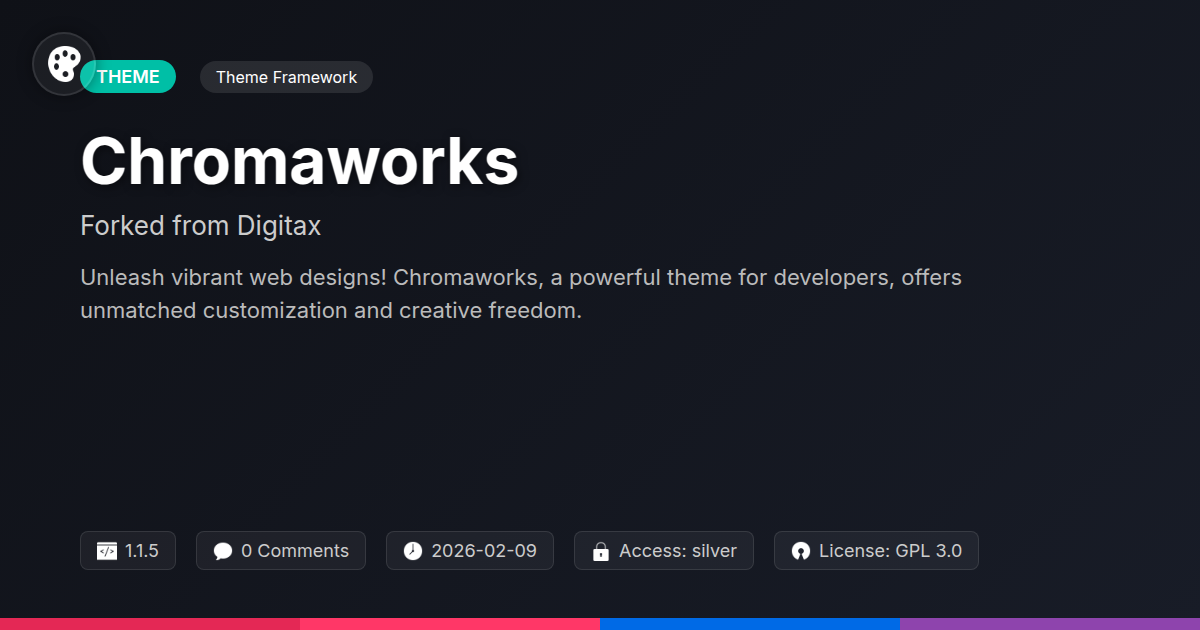 So, there you have it. Chromaworks isn't just another theme. It's the digital equivalent of discovering a secret stash of glitter and no-nonsense coding tools. We’ve journeyed from the frustration of bland websites to the exhilarating prospect of building digital masterpieces without needing a degree in advanced sorcery. You're a developer, a creator, a digital architect. Why should your tools limit your vision? Chromaworks is about embracing that inherent creativity, about turning those 'what if' moments into stunning realities. It’s about spending less time fighting your tools and more time perfecting your craft. Think of it as upgrading from a trowel to a 3D printer for your web projects. Whether you’re an agency looking to wow clients with unforgettable designs, or a solo developer craving the freedom to truly express yourself, this is where you find that sweet spot. It’s time to leave behind the days of compromise and embrace a platform that understands your ambition. Go forth, build something audacious, and remember: the only limit is your imagination (and maybe server capacity, but we can't fix everything).
