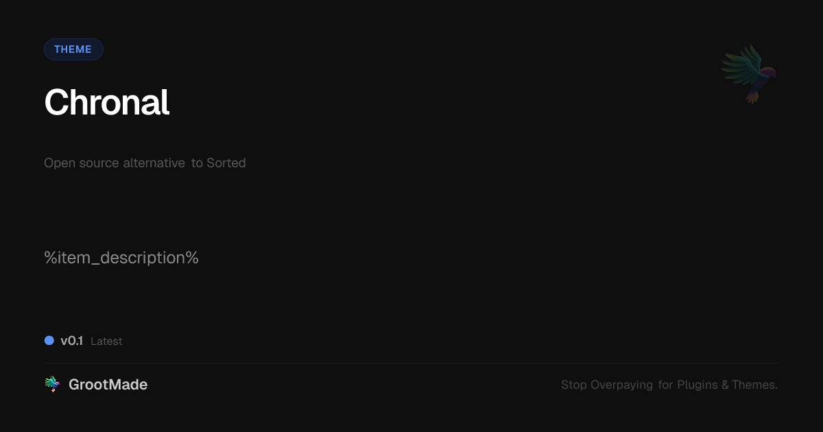 GrootMade is NOT affiliated with Sorted or its original author. Sorted™ is a trademark of its respective owner and use of it does not imply any endorsement or affiliation. This product has been forked under the GNU General Public License (GPL) and all non-GPL assets (such as proprietary images, fonts, and branding) have been removed. Distributing GPL-licensed code is 100% legal.