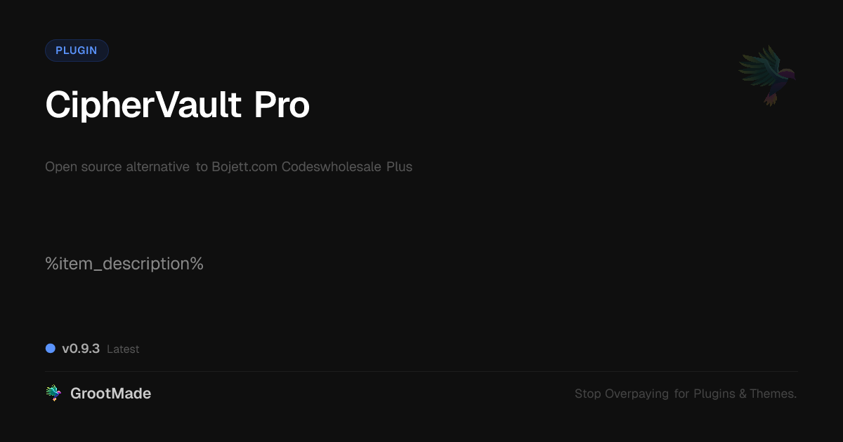 GrootMade is NOT affiliated with Bojett.com Codeswholesale Plus or its original author. Bojett.com Codeswholesale Plus™ is a trademark of its respective owner and use of it does not imply any endorsement or affiliation. This product has been forked under the GNU General Public License (GPL) and all non-GPL assets (such as proprietary images, fonts, and branding) have been removed. Distributing GPL-licensed code is 100% legal.