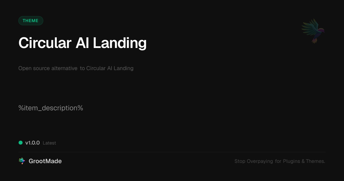 GrootMade is NOT affiliated with Circular AI Landing or its original author. Circular AI Landing™ is a trademark of its respective owner and use of it does not imply any endorsement or affiliation. This product has been forked under the GNU General Public License (GPL) and all non-GPL assets (such as proprietary images, fonts, and branding) have been removed. Distributing GPL-licensed code is 100% legal.