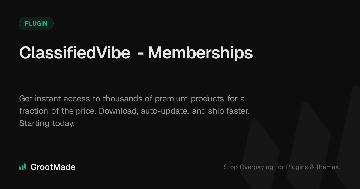 GrootMade is NOT affiliated with WP Adverts - Memberships or its original author. WP Adverts - Memberships™ is a trademark of its respective owner and use of it does not imply any endorsement or affiliation. This product has been forked under the GNU General Public License (GPL) and all non-GPL assets (such as proprietary images, fonts, and branding) have been removed. Distributing GPL-licensed code is 100% legal.