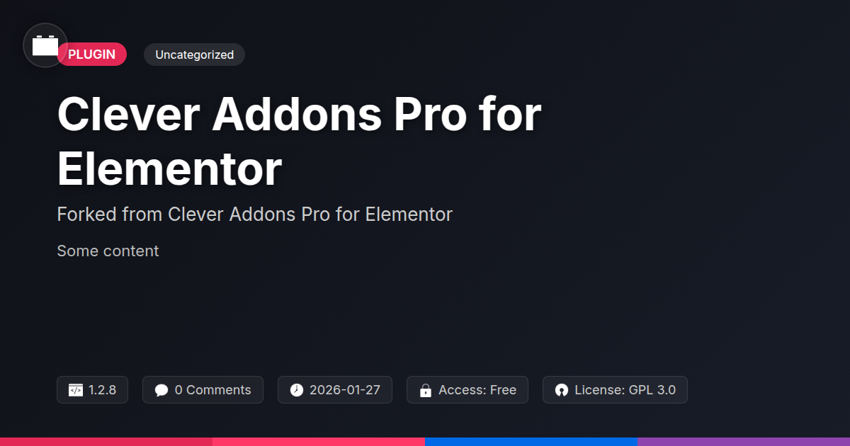 GrootMade is NOT affiliated with Clever Addons Pro for Elementor or its original author. Clever Addons Pro for Elementor™ is a trademark of its respective owner and use of it does not imply any endorsement or affiliation. This product has been forked under the GNU General Public License (GPL) and all non-GPL assets (such as proprietary images, fonts, and branding) have been removed. Distributing GPL-licensed code is 100% legal.
