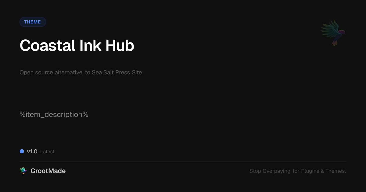 GrootMade is NOT affiliated with Sea Salt Press Site or its original author. Sea Salt Press Site™ is a trademark of its respective owner and use of it does not imply any endorsement or affiliation. This product has been forked under the GNU General Public License (GPL) and all non-GPL assets (such as proprietary images, fonts, and branding) have been removed. Distributing GPL-licensed code is 100% legal.