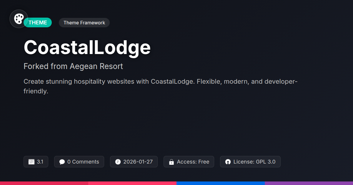 This isn't about cutting corners; it's about smart building. It’s about empowering you to focus on the creative aspects of design and the strategic needs of your clients, rather than getting bogged down in technical minutiae. CoastalLodge respects your time and your craft. It’s a testament to what happens when thoughtful design meets robust engineering, all wrapped up in a package that’s as delightful to work with as it is to behold. Abandon those outdated, clunky templates. It’s time to make some waves. It's time to give your projects the coastal charm and developer-friendly foundation they truly deserve. Isn't it time your website looked like it was ready for a vacation, and your development process felt like one too?