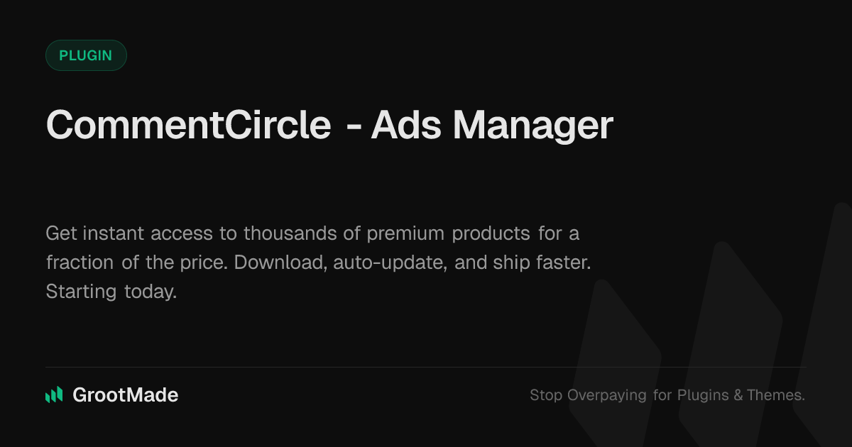 GrootMade is NOT affiliated with wpDiscuz - Ads Manager or its original author. wpDiscuz - Ads Manager™ is a trademark of its respective owner and use of it does not imply any endorsement or affiliation. This product has been forked under the GNU General Public License (GPL) and all non-GPL assets (such as proprietary images, fonts, and branding) have been removed. Distributing GPL-licensed code is 100% legal.