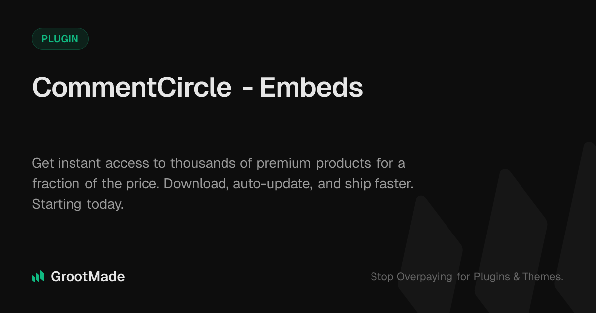 GrootMade is NOT affiliated with wpDiscuz - Embeds or its original author. wpDiscuz - Embeds™ is a trademark of its respective owner and use of it does not imply any endorsement or affiliation. This product has been forked under the GNU General Public License (GPL) and all non-GPL assets (such as proprietary images, fonts, and branding) have been removed. Distributing GPL-licensed code is 100% legal.