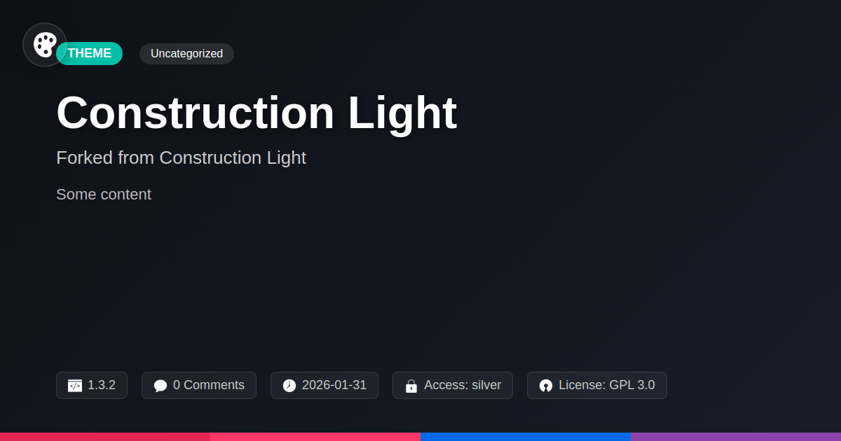GrootMade is NOT affiliated with Construction Light or its original author. Construction Light™ is a trademark of its respective owner and use of it does not imply any endorsement or affiliation. This product has been forked under the GNU General Public License (GPL) and all non-GPL assets (such as proprietary images, fonts, and branding) have been removed. Distributing GPL-licensed code is 100% legal.