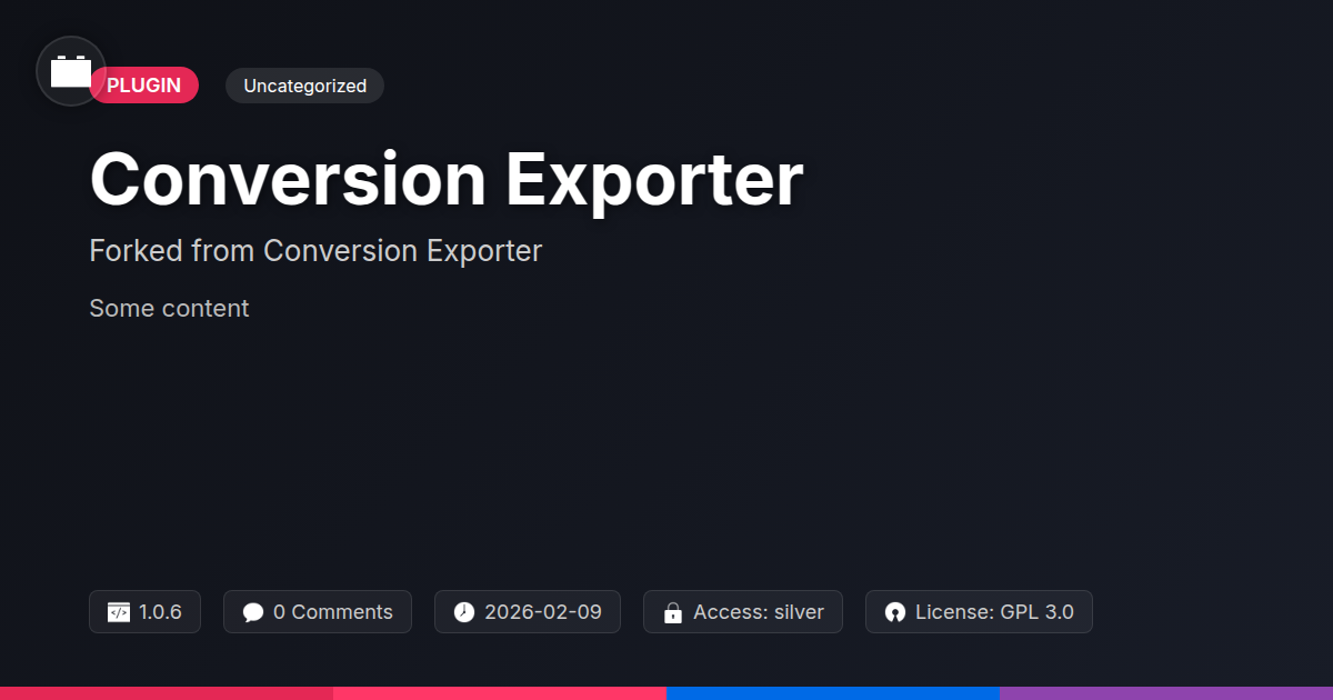 GrootMade is NOT affiliated with Conversion Exporter or its original author. Conversion Exporter™ is a trademark of its respective owner and use of it does not imply any endorsement or affiliation. This product has been forked under the GNU General Public License (GPL) and all non-GPL assets (such as proprietary images, fonts, and branding) have been removed. Distributing GPL-licensed code is 100% legal.