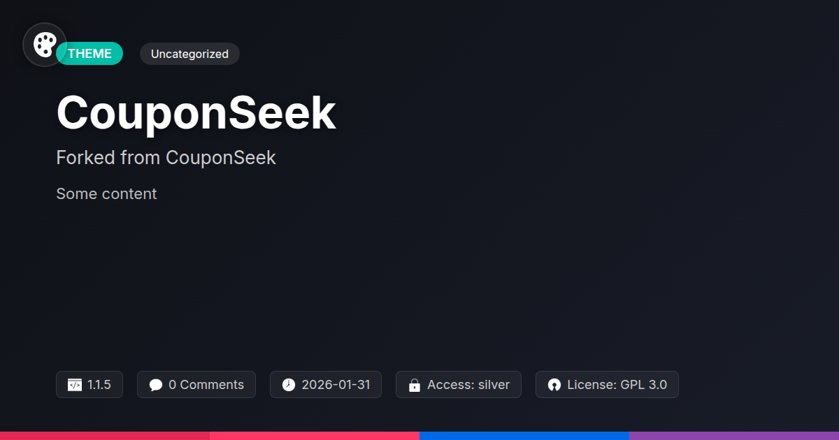 GrootMade is NOT affiliated with CouponSeek or its original author. CouponSeek™ is a trademark of its respective owner and use of it does not imply any endorsement or affiliation. This product has been forked under the GNU General Public License (GPL) and all non-GPL assets (such as proprietary images, fonts, and branding) have been removed. Distributing GPL-licensed code is 100% legal.