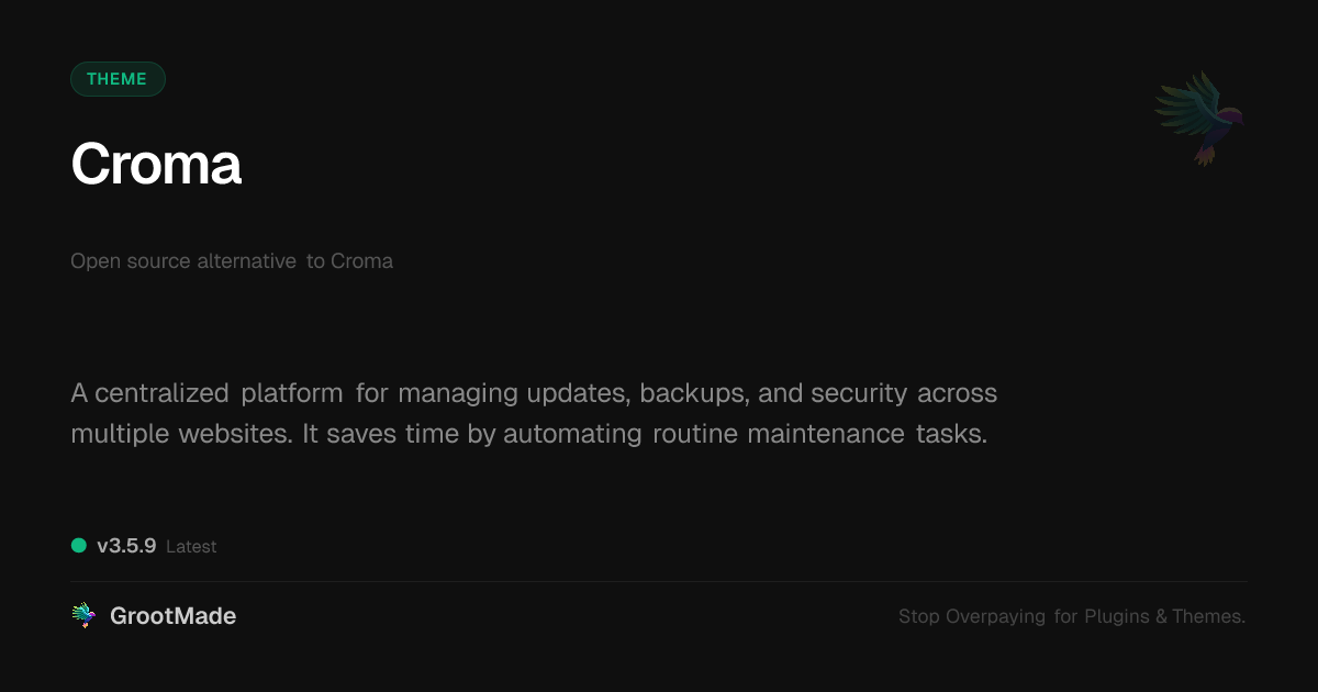 GrootMade is NOT affiliated with Croma or its original author. Croma™ is a trademark of its respective owner and use of it does not imply any endorsement or affiliation. This product has been forked under the GNU General Public License (GPL) and all non-GPL assets (such as proprietary images, fonts, and branding) have been removed. Distributing GPL-licensed code is 100% legal.