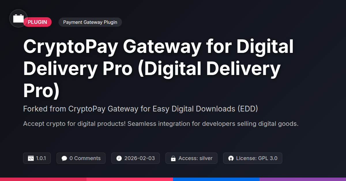 Ever feel like your online store’s potential is being held back by outdated payment solutions? We get it. Building and selling digital products is a whole different ballgame, and you need a payment gateway that's as agile, innovative, and forward-thinking as you are. You're not just selling files; you're delivering experiences, knowledge, and tools. So, why settle for a system that acts like it's stuck in the dial-up era? That's where CryptoPay Gateway for Digital Delivery Pro struts in, like the cool, tech-savvy cousin who actually knows what they're doing. Forked from the legendary CryptoPay Gateway for Easy Digital Downloads, but juiced up and tailored specifically for your digital delivery needs. This isn't just another plugin; it's your secret weapon for accepting all sorts of cool digital currencies, making transactions smoother than a buttered-up penguin on ice, and ensuring your customers get what they paid for, pronto. Developers, agencies, and anyone who loves a robust, open-source solution – this one's for you. Get ready to ditch the payment headaches and embrace the future of digital sales.