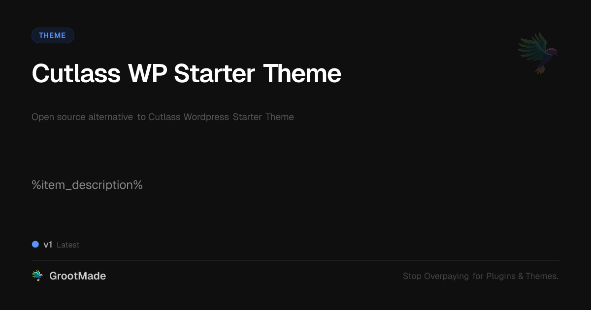 GrootMade is NOT affiliated with Cutlass Wordpress Starter Theme or its original author. Cutlass Wordpress Starter Theme™ is a trademark of its respective owner and use of it does not imply any endorsement or affiliation. This product has been forked under the GNU General Public License (GPL) and all non-GPL assets (such as proprietary images, fonts, and branding) have been removed. Distributing GPL-licensed code is 100% legal.