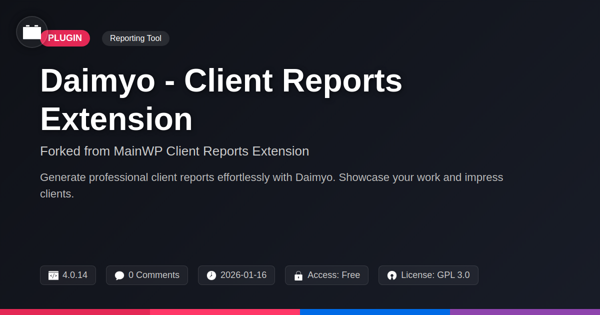 We know what you're thinking. "Another plugin? Great." But hold your horses. This isn't just any plugin. This is Daimyo - Client Reports Extension, a lovingly forked and polished gem that takes the solid foundation of the original extension and cranks it up to eleven. We're talking about transforming your client communication from a chore into a competitive advantage. Imagine impressing your clients with insightful, data-rich reports that showcase your professionalism and the value you bring – all without you breaking a sweat. Whether you're a solo dev drowning in spreadsheets or an agency looking to scale your client reporting game without hiring a dedicated report writer (who would want that job anyway?), this is for you. Forget the days of generic, dull reports. It's time to unleash your inner reporting daimyo and command respect. Let's dive into how this baby can make your life easier and your clients happier, all while keeping your developer sanity intact.