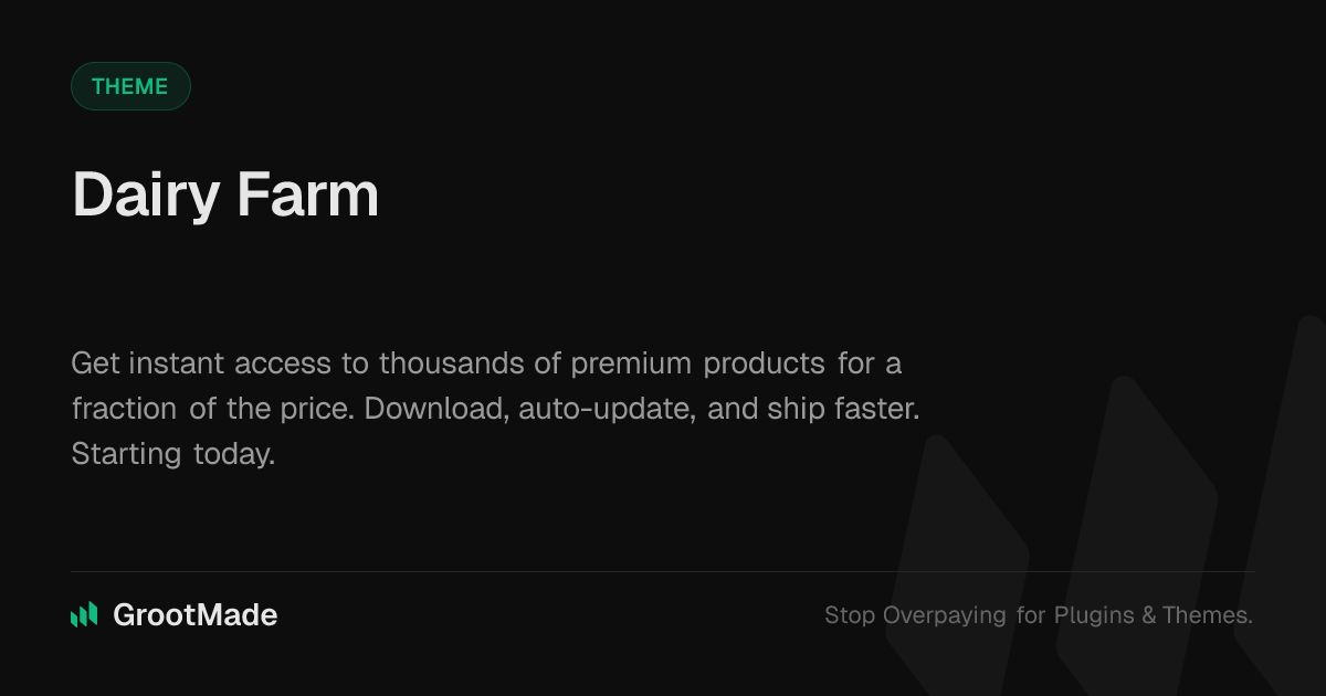 GrootMade is NOT affiliated with Dairy Farm or its original author. Dairy Farm™ is a trademark of its respective owner and use of it does not imply any endorsement or affiliation. This product has been forked under the GNU General Public License (GPL) and all non-GPL assets (such as proprietary images, fonts, and branding) have been removed. Distributing GPL-licensed code is 100% legal.