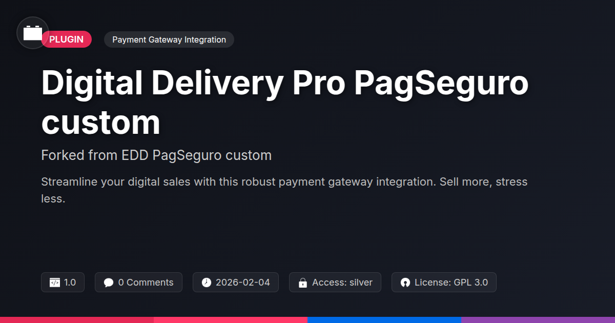 GrootMade is NOT affiliated with EDD PagSeguro custom or its original author. EDD PagSeguro custom™ is a trademark of its respective owner and use of it does not imply any endorsement or affiliation. This product has been forked under the GNU General Public License (GPL) and all non-GPL assets (such as proprietary images, fonts, and branding) have been removed. Distributing GPL-licensed code is 100% legal.