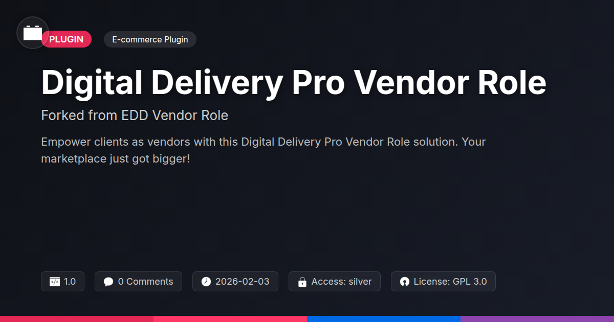 GrootMade is NOT affiliated with EDD Vendor Role or its original author. EDD Vendor Role™ is a trademark of its respective owner and use of it does not imply any endorsement or affiliation. This product has been forked under the GNU General Public License (GPL) and all non-GPL assets (such as proprietary images, fonts, and branding) have been removed. Distributing GPL-licensed code is 100% legal.