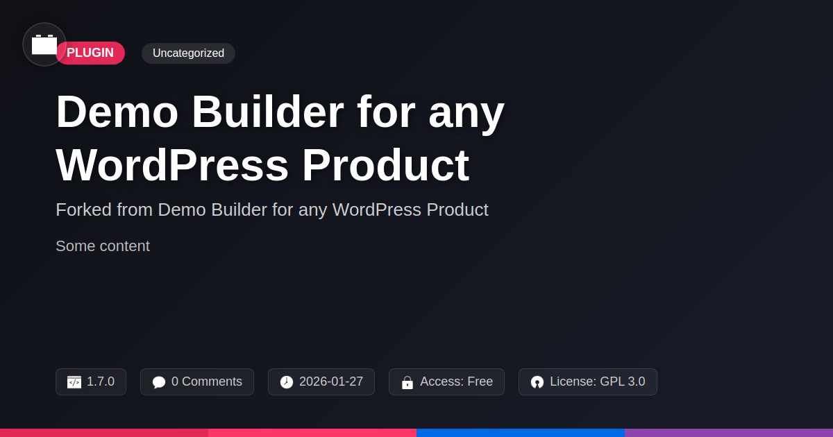 GrootMade is NOT affiliated with Demo Builder for any WordPress Product or its original author. Demo Builder for any WordPress Product™ is a trademark of its respective owner and use of it does not imply any endorsement or affiliation. This product has been forked under the GNU General Public License (GPL) and all non-GPL assets (such as proprietary images, fonts, and branding) have been removed. Distributing GPL-licensed code is 100% legal.