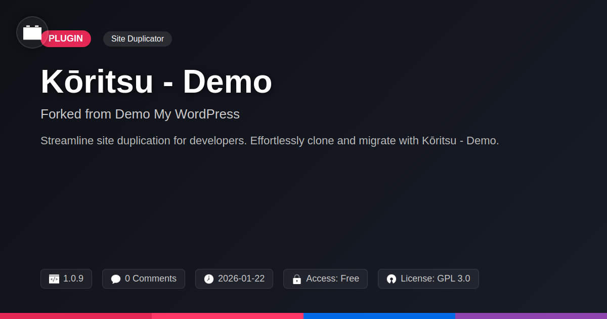 This isn't about reinventing the wheel; it's about giving the wheel a turbo boost and adding some fancy racing stripes. We've forked a capable foundation, the venerable Demo My WordPress, and meticulously polished it to a mirror shine. Our goal? To provide a tool that’s not just functional, but intuitive, reliable, and frankly, a joy to use. Whether you're a solo developer churning out sites like a well-oiled machine, an agency juggling multiple client projects with grace (or mild panic), or an open-source purist who appreciates elegant solutions, Kōritsu - Demo is here to save your sanity. Forget the tedious manual migrations that feel like performing open-heart surgery with a butter knife. We're talking about a streamlined, robust solution that respects your time and your craft. Let's dive into why this particular fork is about to become your new favorite digital sidekick.