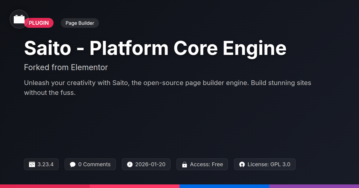 So, there you have it. Saito - Platform Core Engine. It’s the visual editor you’ve been waiting for, stripped down to its powerful, unadulterated essence. No more corporate overlords dictating your creative flow, no more surprise invoices for features you thought were basic. We've taken a proven foundation, dusted it off, and rebuilt it with a relentless focus on what truly matters: empowering you, the creator. For the developers slinging code and dreaming of cleaner architectures, for the agencies juggling client demands and striving for peak efficiency, and for every open-source advocate who believes the best tools should be free and transparent – Saito is your new command center. It’s a testament to what happens when innovation is driven by passion and community, not just profit margins. We’re not just offering a tool; we’re inviting you to be part of a movement. A movement towards more accessible, more flexible, and more honestly powerful web design. So, jump in. Explore the code, extend the possibilities, and help us shape the future of digital creation, one beautifully crafted site at a time. The engine is ready; it's time to build something extraordinary.