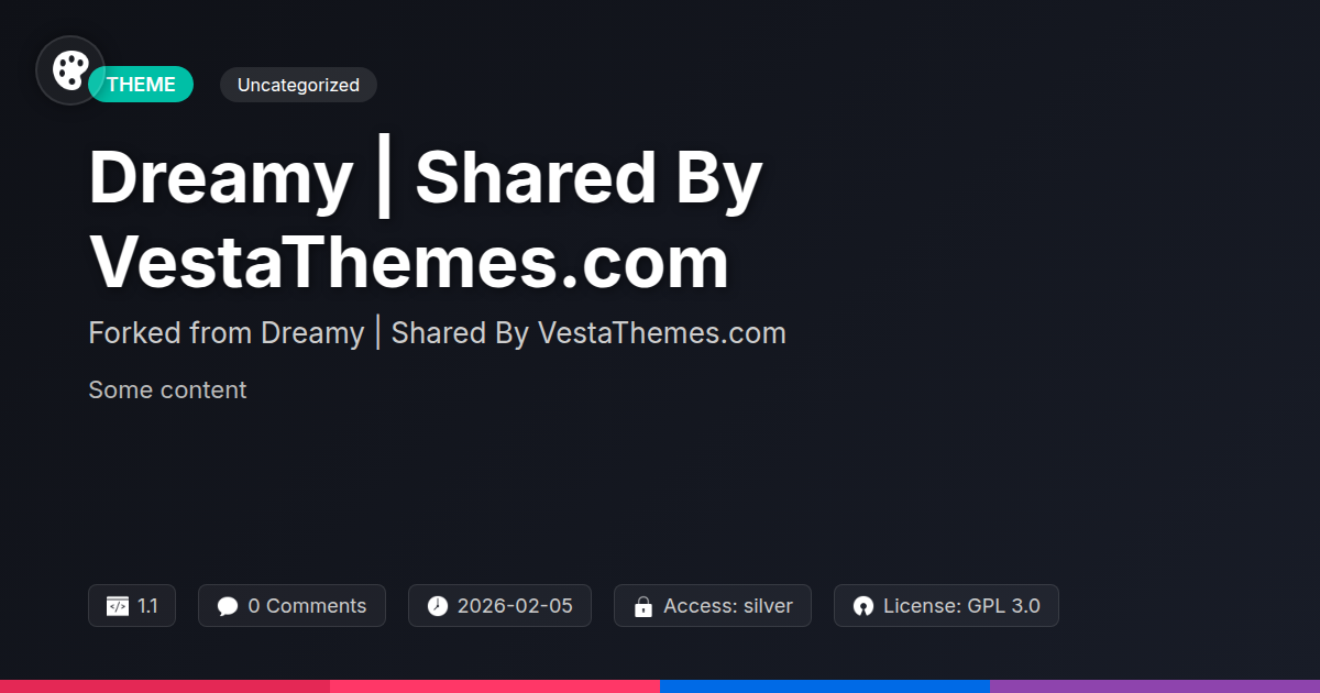 GrootMade is NOT affiliated with Dreamy | Shared By VestaThemes.com or its original author. Dreamy | Shared By VestaThemes.com™ is a trademark of its respective owner and use of it does not imply any endorsement or affiliation. This product has been forked under the GNU General Public License (GPL) and all non-GPL assets (such as proprietary images, fonts, and branding) have been removed. Distributing GPL-licensed code is 100% legal.