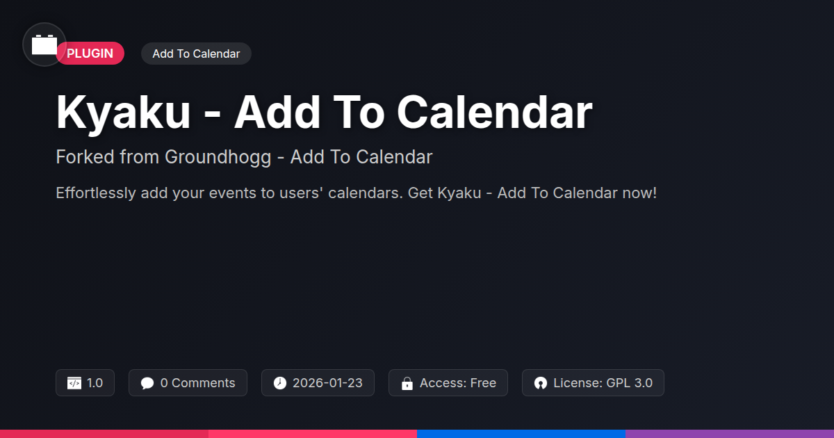 So, there you have it. No more digital tumbleweeds where your event announcements should be. Kyaku - Add To Calendar isn't just another plugin; it's your secret weapon against the dreaded 'I forgot!' excuse. For us developers and agencies, it's a clean, efficient solution to a common client headache. For the open-source enthusiasts, it's a testament to the power of community and shared innovation. You're getting robust functionality that’s been thoughtfully forked and refined, making it easier than ever to ensure your events get the attention – and the attendees – they deserve. It’s about turning passive interest into active participation, with a click. Stop letting valuable event engagement slip through the cracks. Embrace the simplicity, the control, and the sheer convenience that Kyaku brings. Your users’ calendars will thank you, and more importantly, your event attendance numbers will show it. Go ahead, give your events the digital handshake they’ve been waiting for.