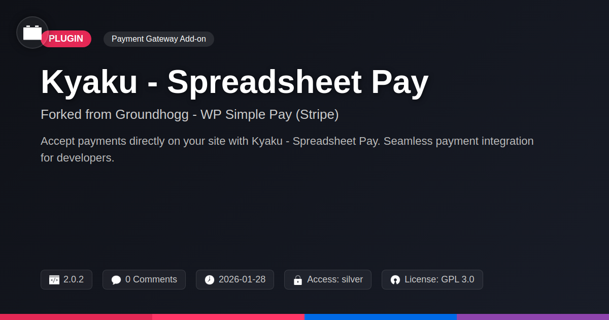 This isn't about proprietary locks or vendor lock-in; it's about empowering you. It’s about giving you the tools to seamlessly accept payments, add value for your clients, and ensure your own hard work is fairly compensated. Think of it as your digital cashier, operating with the efficiency of a well-oiled algorithm and the flexibility you’ve come to expect from quality code. Whether you're a solo developer looking to sell your digital wares, an agency wanting to offer a premium, hassle-free payment experience, or just someone who appreciates a well-constructed solution, Kyaku - Spreadsheet Pay is designed to make your life easier – and more profitable. Ditch the archaic methods, embrace the smart fork, and let your websites do what they were always meant to do: perform brilliantly and bring home the bacon. It's time to get paid, without the pain.