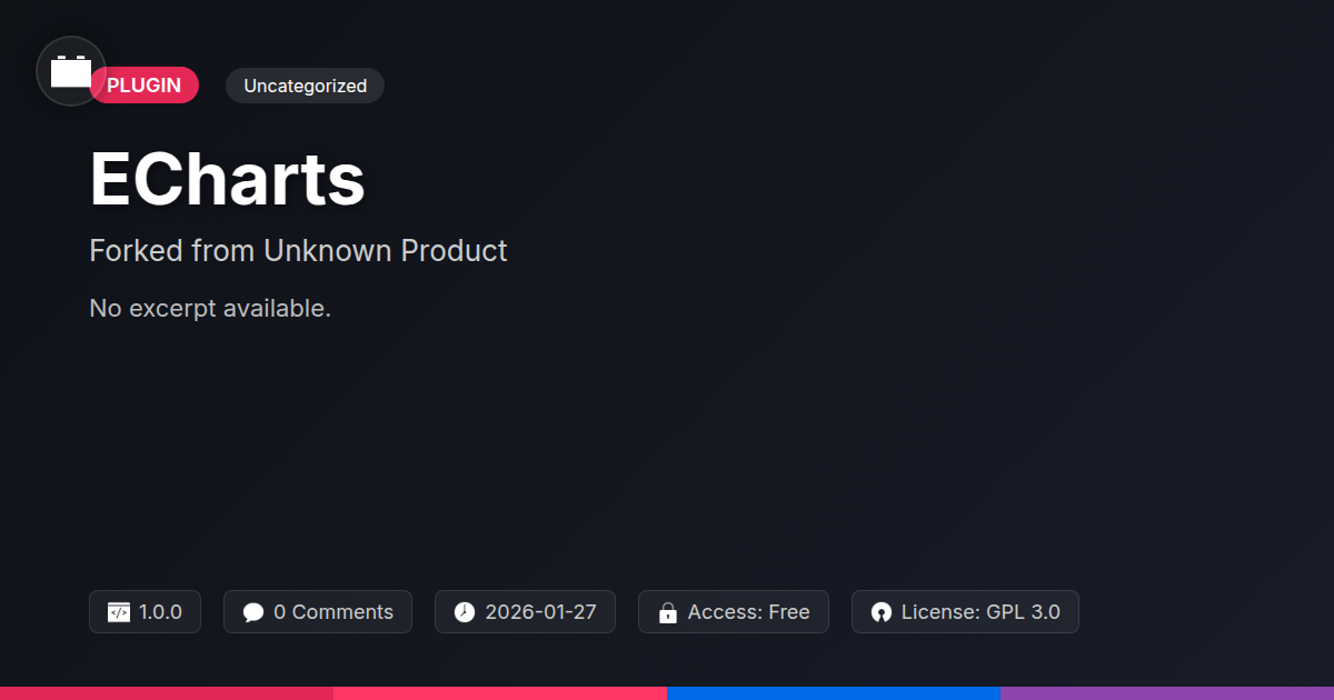 GrootMade is NOT affiliated with ECharts - Charts for Elementor or its original author. ECharts - Charts for Elementor™ is a trademark of its respective owner and use of it does not imply any endorsement or affiliation. This product has been forked under the GNU General Public License (GPL) and all non-GPL assets (such as proprietary images, fonts, and branding) have been removed. Distributing GPL-licensed code is 100% legal.