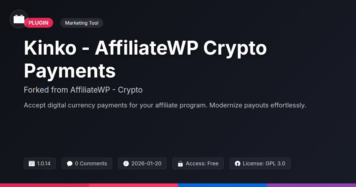 GrootMade is NOT affiliated with AffiliateWP - Crypto or its original author. AffiliateWP - Crypto™ is a trademark of its respective owner and use of it does not imply any endorsement or affiliation. This product has been forked under the GNU General Public License (GPL) and all non-GPL assets (such as proprietary images, fonts, and branding) have been removed. Distributing GPL-licensed code is 100% legal.