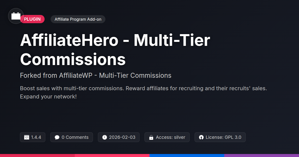 GrootMade is NOT affiliated with AffiliateWP - Multi-Tier Commissions or its original author. AffiliateWP - Multi-Tier Commissions™ is a trademark of its respective owner and use of it does not imply any endorsement or affiliation. This product has been forked under the GNU General Public License (GPL) and all non-GPL assets (such as proprietary images, fonts, and branding) have been removed. Distributing GPL-licensed code is 100% legal.