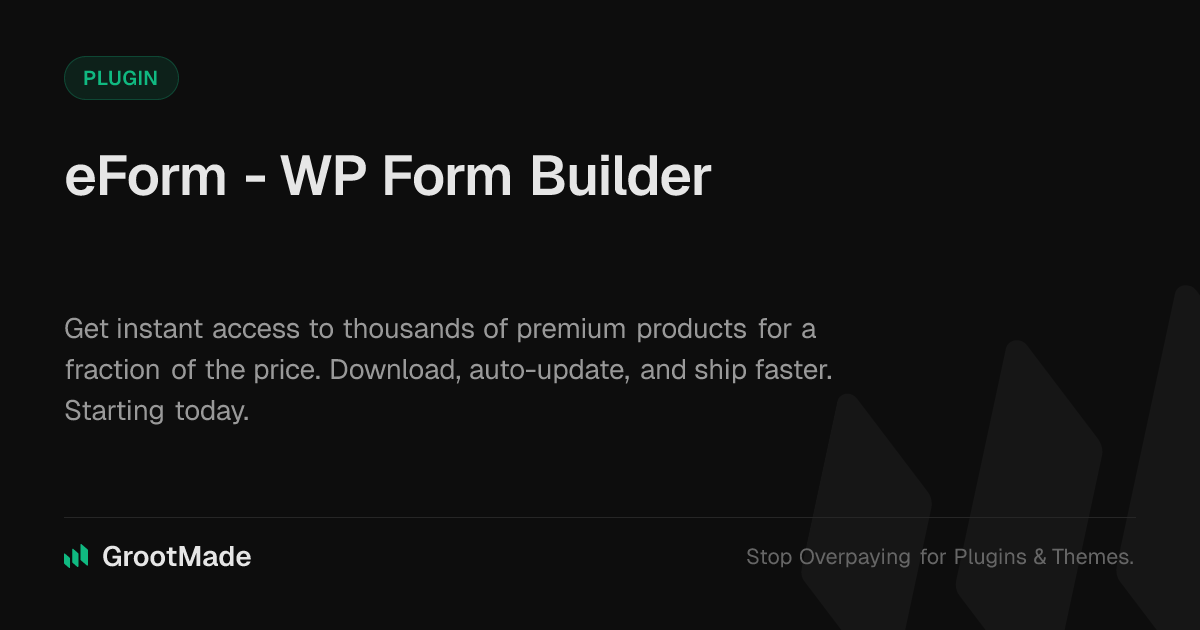 GrootMade is NOT affiliated with eForm - WordPress Form Builder or its original author. eForm - WordPress Form Builder™ is a trademark of its respective owner and use of it does not imply any endorsement or affiliation. This product has been forked under the GNU General Public License (GPL) and all non-GPL assets (such as proprietary images, fonts, and branding) have been removed. Distributing GPL-licensed code is 100% legal.