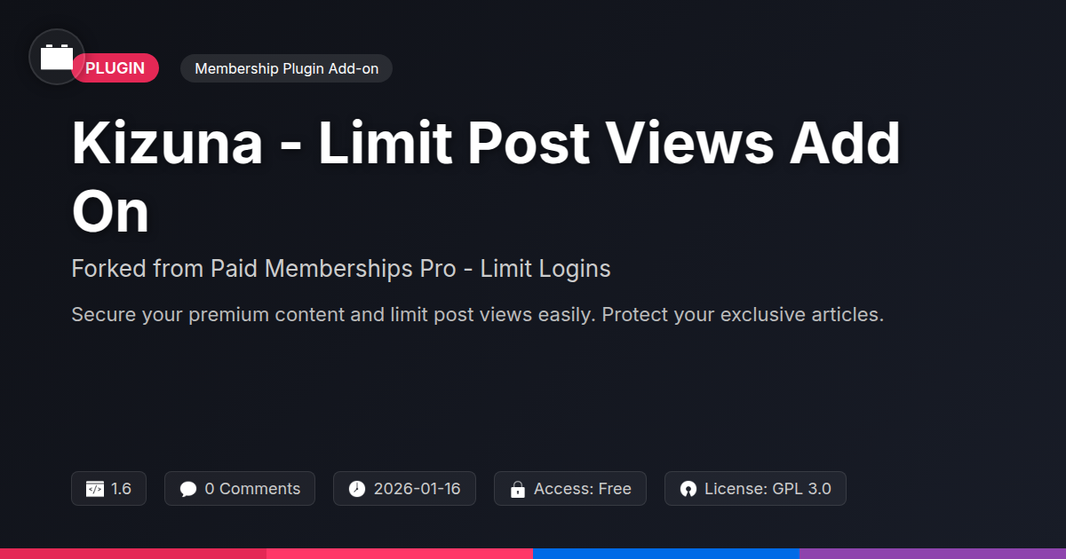 Are you tired of your precious content being scraped faster than a free donut in a developer's lounge? Do you dream of a world where your carefully crafted articles aren't just fodder for bots and opportunistic lurkers? We get it. Keeping your site's best stuff under wraps, especially for your most valuable members, can feel like trying to herd cats through a laser grid. It's a common pain point that plagues even the most seasoned webmasters. You've poured your heart, soul, and countless hours into creating something amazing – something that deserves to be seen by the right eyes. But the digital Wild West has a way of making even the most secure fortresses feel a bit… porous. Enter Kizuna - Limit Post Views Add On, the trusty sidekick you didn't know you needed. This ain't your grandma's content protection; it's a sophisticated, yet remarkably straightforward, solution designed by folks who understand the unique joys and, let's be honest, the occasional existential dread of managing a membership-based site. Forked from a well-respected lineage, this add-on refines the art of controlled content access, ensuring your premium offerings remain just that – premium. Think of it as the velvet rope for your digital empire, but with way less hassle and a lot more technical wizardry under the hood. Ready to reclaim control and make your content truly exclusive?