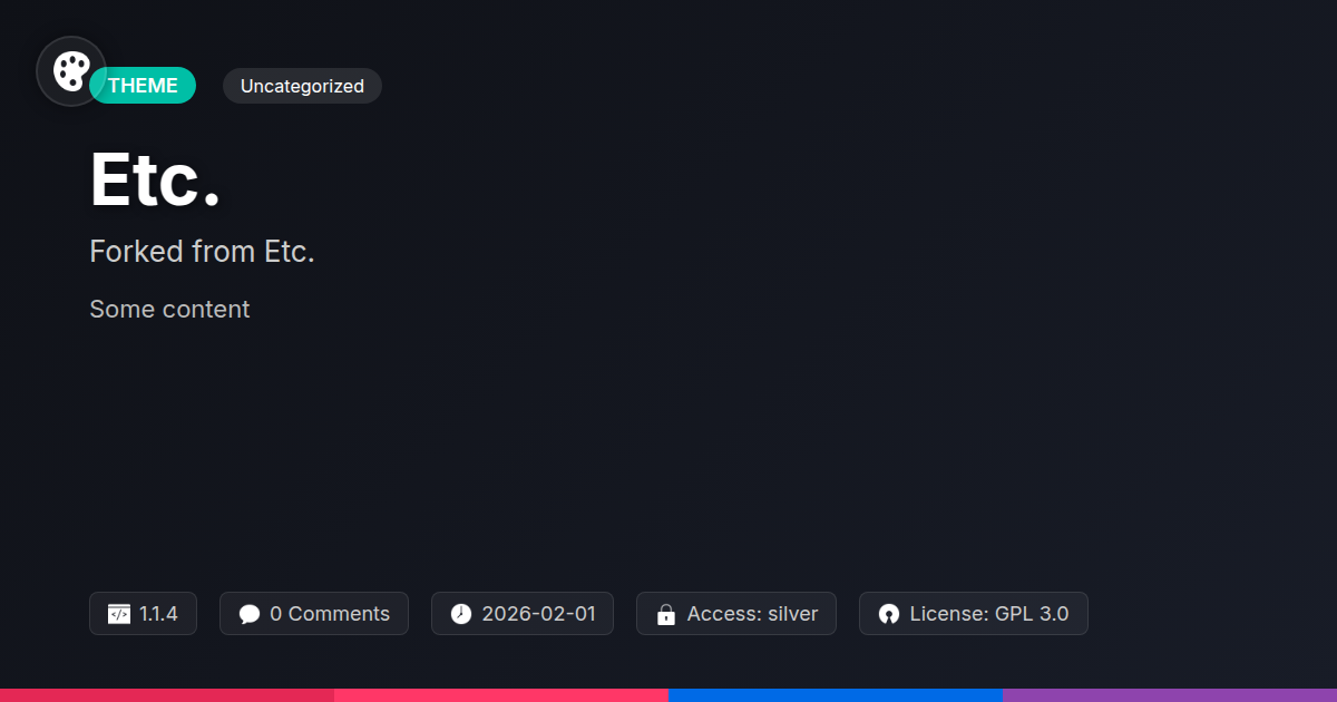 GrootMade is NOT affiliated with Etc. or its original author. Etc.™ is a trademark of its respective owner and use of it does not imply any endorsement or affiliation. This product has been forked under the GNU General Public License (GPL) and all non-GPL assets (such as proprietary images, fonts, and branding) have been removed. Distributing GPL-licensed code is 100% legal.