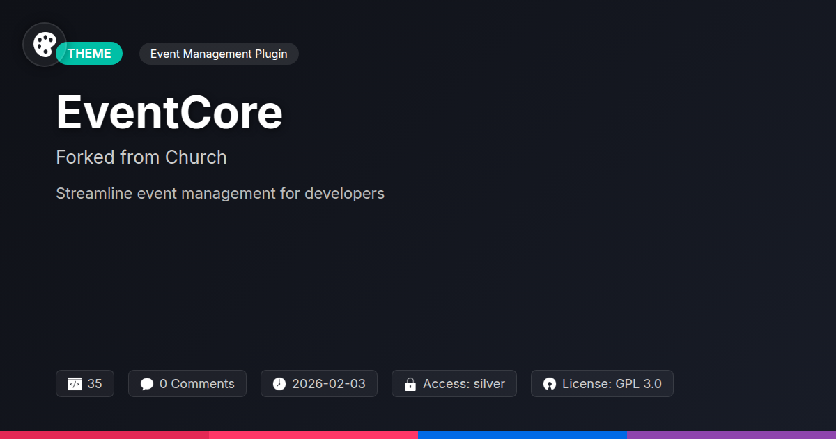 GrootMade is NOT affiliated with Church & Event or its original author. Church & Event™ is a trademark of its respective owner and use of it does not imply any endorsement or affiliation. This product has been forked under the GNU General Public License (GPL) and all non-GPL assets (such as proprietary images, fonts, and branding) have been removed. Distributing GPL-licensed code is 100% legal.