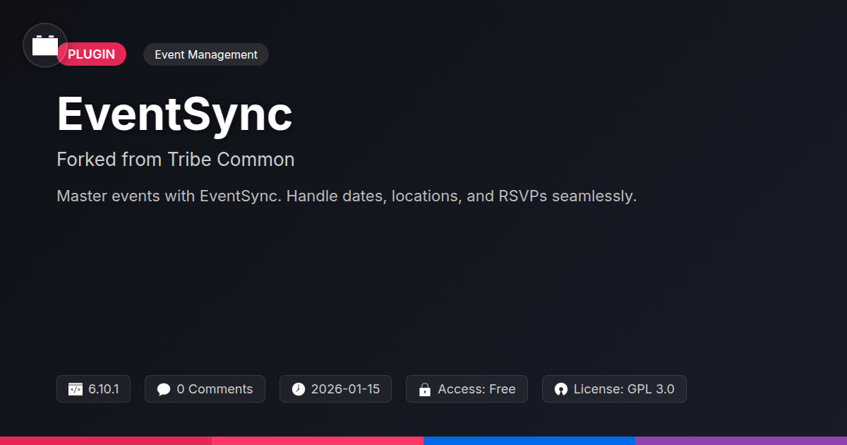 Are you tired of wrestling with clunky event management solutions on your development projects? Do you find yourself muttering under your breath about plugins that promise the moon but deliver… well, lukewarm tea? If you're nodding emphatically, then it's time we had a little chat about EventSync. Imagine a world where managing events on your client's sites isn't a headache, but a breeze. A world where you can unleash powerful event calendars, ticketing, and all the bells and whistles without needing a PhD in arcane plugin configurations. This isn't a fairytale, folks. This is what happens when you take a rock-solid, battle-tested event management foundation – the kind that's been keeping rave reviews ticking for ages – and give it a fresh coat of paint with a focus on developer freedom and community spirit. We’re talking about a solution born from a revered legacy, now open to the masses, ready to integrate seamlessly into your creative workflows. Forget the bloat, ditch the vendor lock-in, and embrace a tool that respects your craft and your desire for robust, flexible solutions. Let's dive into how this gem can redefine your event management game.