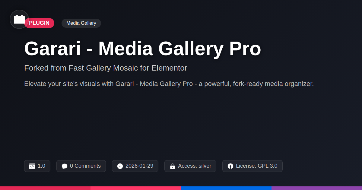 So, there you have it. Garari - Media Gallery Pro isn't just another plugin vying for your precious digital real estate. It’s a meticulously crafted solution, forged from the fires of a well-loved original and tempered with the spirit of open-source innovation. You’ve seen how it banishes the drab, the clunky, and the downright frustrating aspects of website galleries, replacing them with sharp design, blazing performance, and intuitive controls. For the discerning developer or agency, this isn't just about displaying images; it’s about enhancing user experience, reinforcing brand identity, and ultimately, creating websites that don't just function, but perform. The ability to customize layouts with precision, filter content with ease, and ensure lightning-fast load times means you can finally stop apologizing for your gallery and start celebrating it. It’s the kind of tool that makes you feel smart for choosing it, a reliable workhorse that doesn’t demand constant babysitting. And let’s not forget the sweet, sweet freedom that comes with an open-source heart – no vendor lock-in, just code that works for you and evolves with the digital world. It’s time to ditch the mediocrity and embrace a gallery that’s as brilliant as your own ideas. Trust us, your users (and your sanity) will thank you.