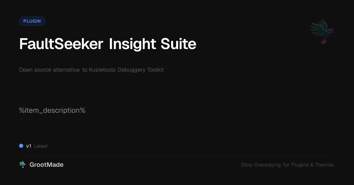 GrootMade is NOT affiliated with Kupietools Debuggery Toolkit or its original author. Kupietools Debuggery Toolkit™ is a trademark of its respective owner and use of it does not imply any endorsement or affiliation. This product has been forked under the GNU General Public License (GPL) and all non-GPL assets (such as proprietary images, fonts, and branding) have been removed. Distributing GPL-licensed code is 100% legal.