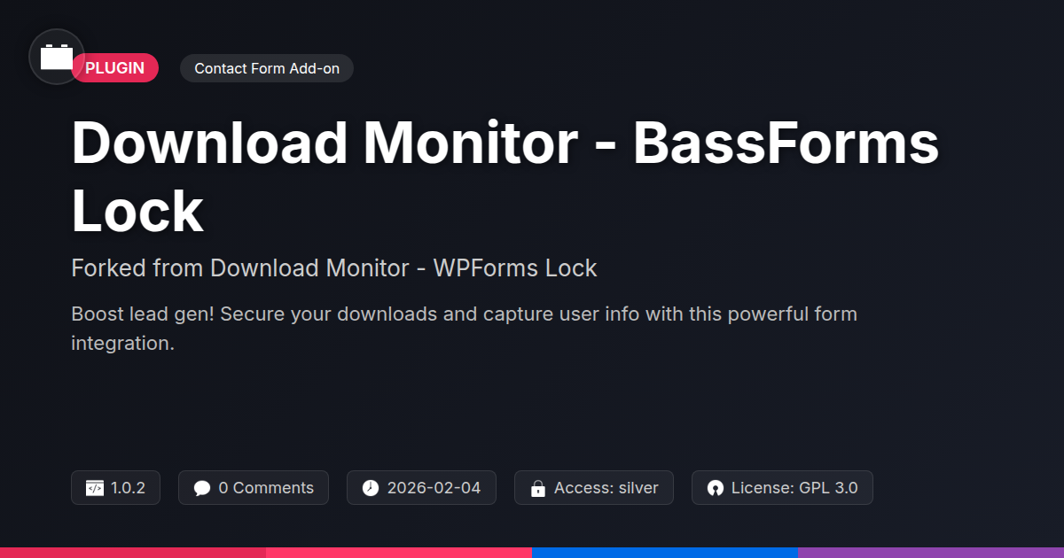 GrootMade is NOT affiliated with Download Monitor - WPForms Lock or its original author. Download Monitor - WPForms Lock™ is a trademark of its respective owner and use of it does not imply any endorsement or affiliation. This product has been forked under the GNU General Public License (GPL) and all non-GPL assets (such as proprietary images, fonts, and branding) have been removed. Distributing GPL-licensed code is 100% legal.
