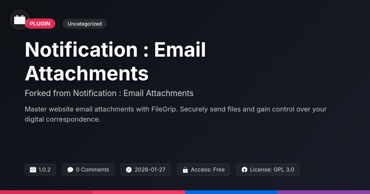GrootMade is NOT affiliated with Notification : Email Attachments or its original author. Notification : Email Attachments™ is a trademark of its respective owner and use of it does not imply any endorsement or affiliation. This product has been forked under the GNU General Public License (GPL) and all non-GPL assets (such as proprietary images, fonts, and branding) have been removed. Distributing GPL-licensed code is 100% legal.
