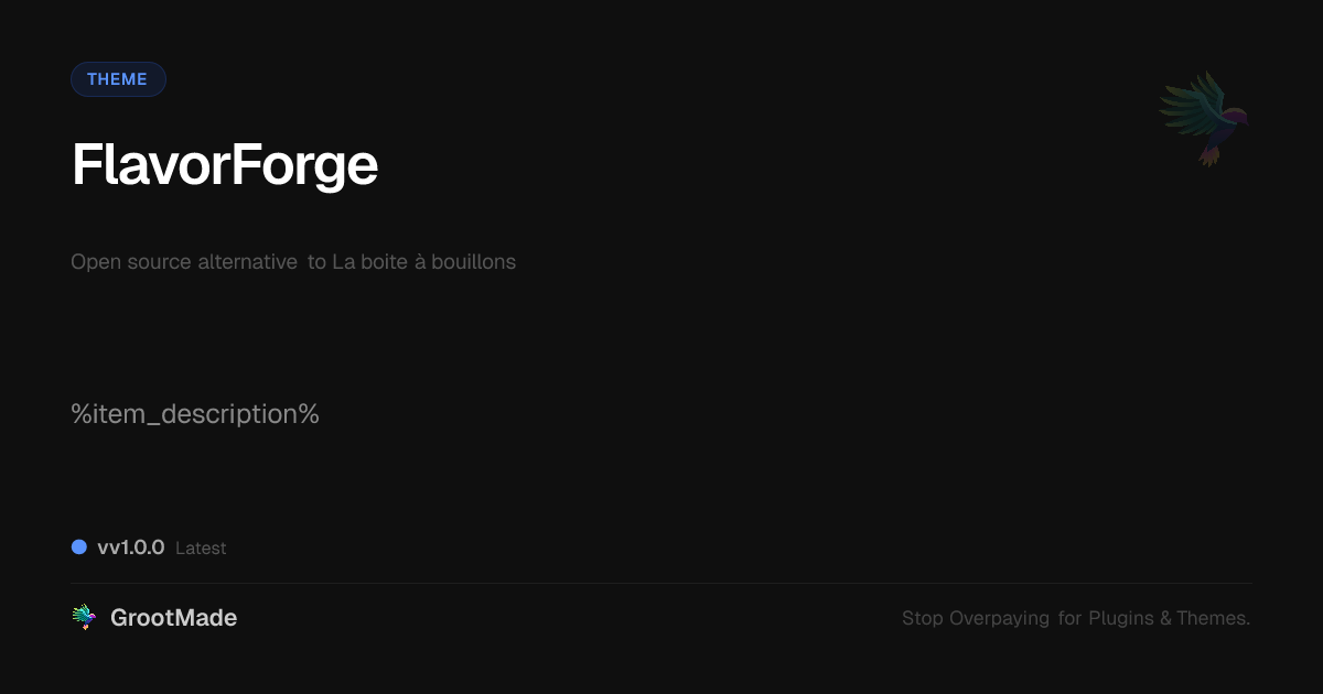 GrootMade is NOT affiliated with La boite à bouillons or its original author. La boite à bouillons™ is a trademark of its respective owner and use of it does not imply any endorsement or affiliation. This product has been forked under the GNU General Public License (GPL) and all non-GPL assets (such as proprietary images, fonts, and branding) have been removed. Distributing GPL-licensed code is 100% legal.