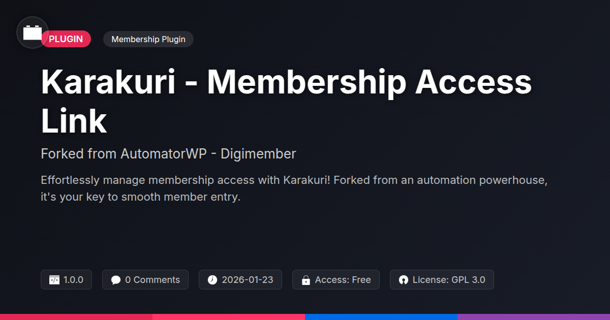 So, we’ve journeyed through the surprisingly intricate world of membership access, uncovering how Karakuri - Membership Access Link, a robust fork of AutomatorWP - Digimember, isn't just another plugin; it's a strategic asset for developers, agencies, and open-source enthusiasts. We’ve seen how it moves beyond basic content gating to offer a sophisticated, automated system that integrates seamlessly into your existing digital infrastructure. For those of us who appreciate a tool that understands our needs for flexibility, power, and just plain efficiency, Karakuri stands out. It’s about ditching the frustration of manual management and embracing a system that works for you, not against you. Remember those days of wrestling with clunky interfaces and praying your access rules didn't break something else? Those days are fading into the digital rearview mirror. Karakuri empowers you to build custom experiences, streamline workflows, and deliver exactly what your users need, precisely when they need it. It’s the kind of elegant solution that lets you focus on what you do best: building amazing digital experiences. Whether you're crafting a complex membership portal for a client or optimizing your own premium content, Karakuri offers the control and automation to make it happen without the typical headaches. It’s a testament to smart design and the enduring appeal of solutions that just… work. So, go forth, automate your access, and reclaim your development time – your future self, and likely your clients, will thank you.
