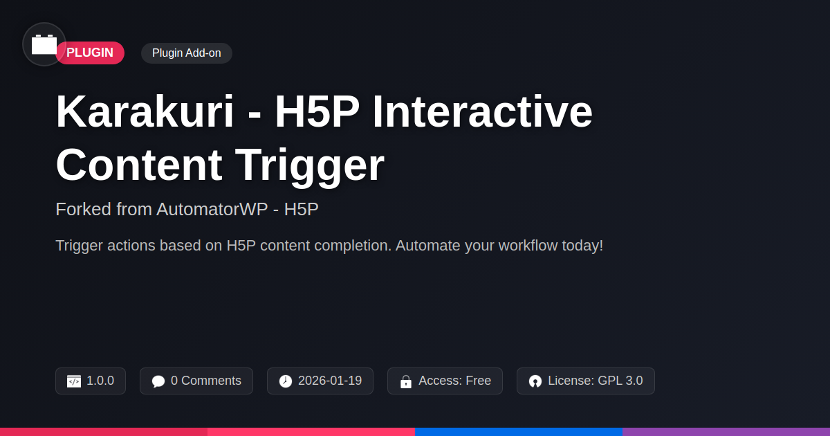 GrootMade is NOT affiliated with AutomatorWP - H5P or its original author. AutomatorWP - H5P™ is a trademark of its respective owner and use of it does not imply any endorsement or affiliation. This product has been forked under the GNU General Public License (GPL) and all non-GPL assets (such as proprietary images, fonts, and branding) have been removed. Distributing GPL-licensed code is 100% legal.