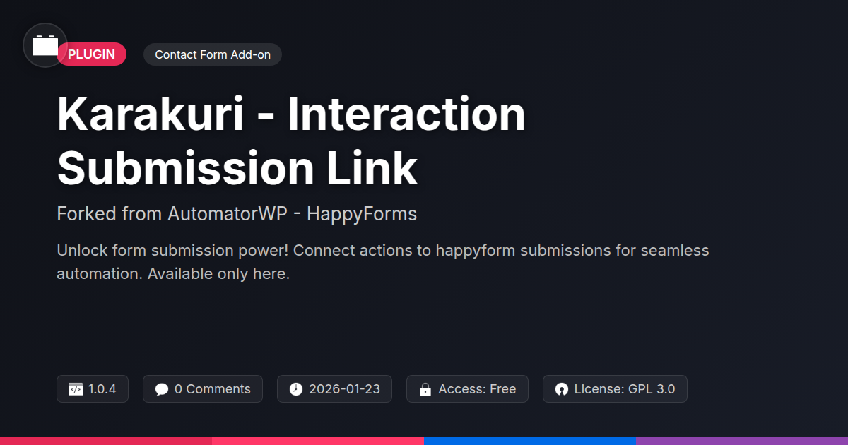 GrootMade is NOT affiliated with AutomatorWP - HappyForms or its original author. AutomatorWP - HappyForms™ is a trademark of its respective owner and use of it does not imply any endorsement or affiliation. This product has been forked under the GNU General Public License (GPL) and all non-GPL assets (such as proprietary images, fonts, and branding) have been removed. Distributing GPL-licensed code is 100% legal.