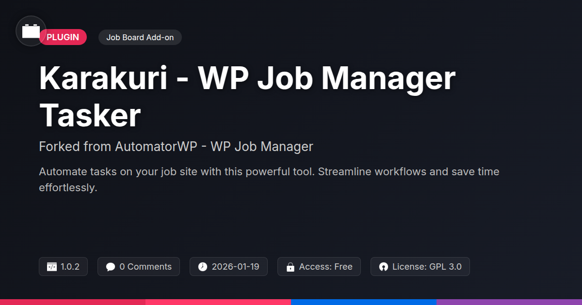 GrootMade is NOT affiliated with AutomatorWP - WP Job Manager or its original author. AutomatorWP - WP Job Manager™ is a trademark of its respective owner and use of it does not imply any endorsement or affiliation. This product has been forked under the GNU General Public License (GPL) and all non-GPL assets (such as proprietary images, fonts, and branding) have been removed. Distributing GPL-licensed code is 100% legal.
