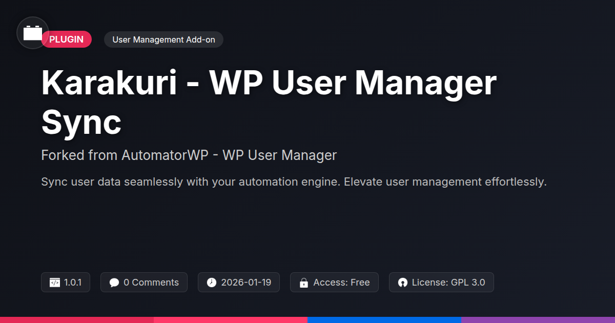 So, there you have it. Karakuri - WP User Manager Sync, the forked marvel that’s here to rescue your sanity and streamline your digital operations. We’ve journeyed through its core functionalities, marveled at its automation prowess, and applauded its open-source heart. For the developers among us, it’s the elegant solution you’ve been searching for – a robust foundation built upon another, promising reliability without the bloat. Agencies, imagine the peace of mind knowing your client’s user data is in sync, their workflows automated, and their systems humming with efficiency. And to our open-source loving comrades, this is a testament to what happens when passion for transparency and functionality collide. No more wrestling with brittle integrations or paying for features you’ll never use. Karakuri offers a focused, powerful approach that respects your time and your intelligence. It’s the digital equivalent of finding out your favorite pizza place now delivers gourmet sushi – unexpected, delightful, and undeniably better. It’s about reclaiming your focus, automating the mundane, and building smarter, more robust digital experiences. So, go ahead, give it a spin. We suspect you'll wonder how you ever managed without it. Because in the grand, often chaotic, world of web development, a little bit of Karakuri-fueled sync and automation goes a very, very long way.