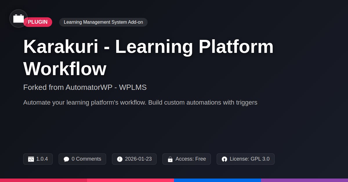 Enter Karakuri - Learning Platform Workflow. Think of it as the über-efficient, caffeine-fueled intern you always wished you had. This isn't just another plugin; it's a workflow powerhouse, meticulously crafted for those who understand the true value of a well-oiled machine. We’re talking about developers who appreciate elegant solutions, agencies managing multiple elearning ventures, and the noble souls who champion open-source principles. If you're nodding along, ready to reclaim your sanity and supercharge your learning platform's efficiency, strap in. We’re about to dive into how Karakuri can turn your digital classroom from a chaotic mess into a masterpiece of automated learning.