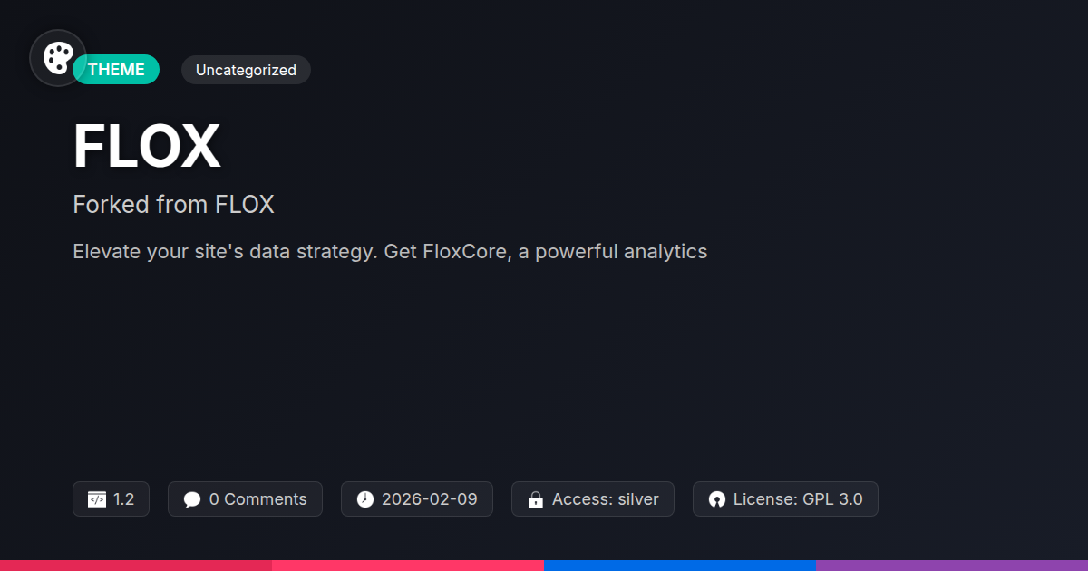 GrootMade is NOT affiliated with FLOX or its original author. FLOX™ is a trademark of its respective owner and use of it does not imply any endorsement or affiliation. This product has been forked under the GNU General Public License (GPL) and all non-GPL assets (such as proprietary images, fonts, and branding) have been removed. Distributing GPL-licensed code is 100% legal.