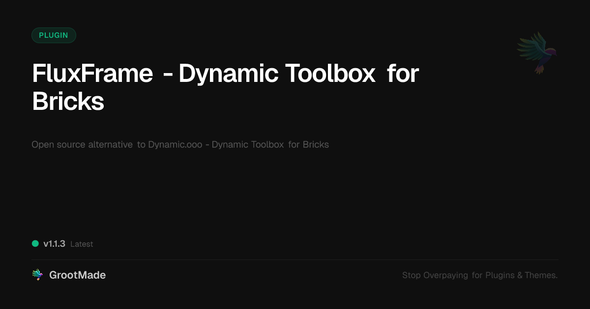 GrootMade is NOT affiliated with Dynamic.ooo - Dynamic Toolbox for Bricks or its original author. Dynamic.ooo - Dynamic Toolbox for Bricks™ is a trademark of its respective owner and use of it does not imply any endorsement or affiliation. This product has been forked under the GNU General Public License (GPL) and all non-GPL assets (such as proprietary images, fonts, and branding) have been removed. Distributing GPL-licensed code is 100% legal.