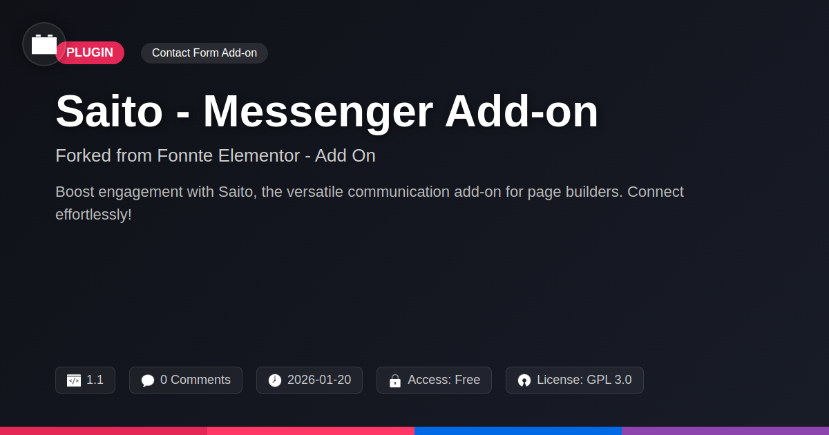 So, there you have it. If you've ever felt the pang of a missed opportunity because your website was too quiet, or if you’re simply a developer who appreciates tools that just work without all the unnecessary drama, then Saito - Messenger Add-on is probably already on your 'to-install' list. We've taken a solid, reliable foundation and breathed new life into it, ensuring it speaks the language of modern web development: efficiency, flexibility, and a healthy dose of open-source goodness. Forget the days of static digital billboards; it’s time for your website to have a personality, a voice, and an accessible way for your audience to connect. Whether you're building your empire one line of code at a time or crafting digital masterpieces for clients, Saito empowers you to bridge that gap, foster engagement, and, dare we say, actually convert those wandering eyes into loyal users. It’s not just another plugin; it’s your new favorite communication conduit, built with the spirit of collaboration and the drive for innovation. So, go ahead. Give your website the pulse it deserves and let Saito - Messenger Add-on handle the conversations, so you can focus on what you do best: building amazing things.